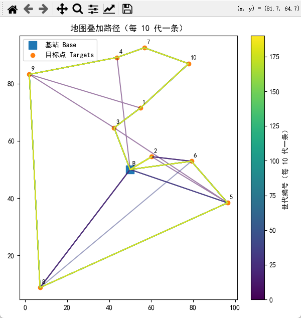points = np.vstack([base, targets]) # points[0] 是基站,1..10 是目标点